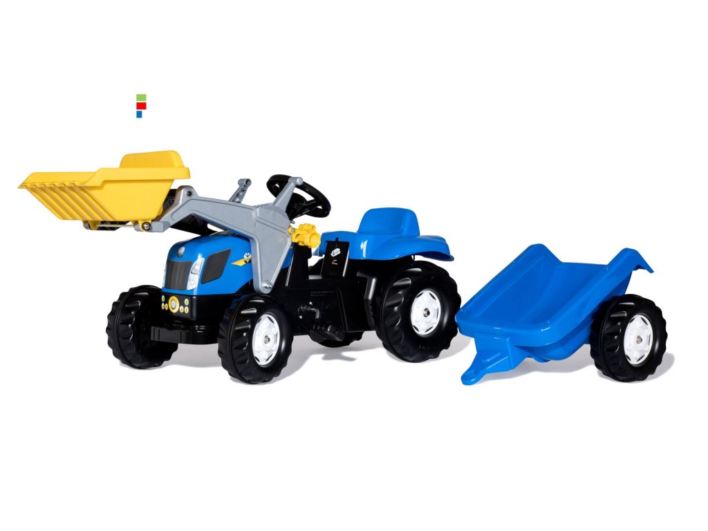 rollyKid New Holland je dokonalým vozidlem pro děti ve věku od 2½ do 5 let, které dokonale kombinuje zábavu a možnosti učení. Tento šlapací traktor včetně přívěsu a čelního nakladače nabízí nekonečná dobrodružství a představuje ideální platformu pro rozvoj nejmenších. Realistickou kapotu lze otevřít a nahlédnout pod „kapotu“.